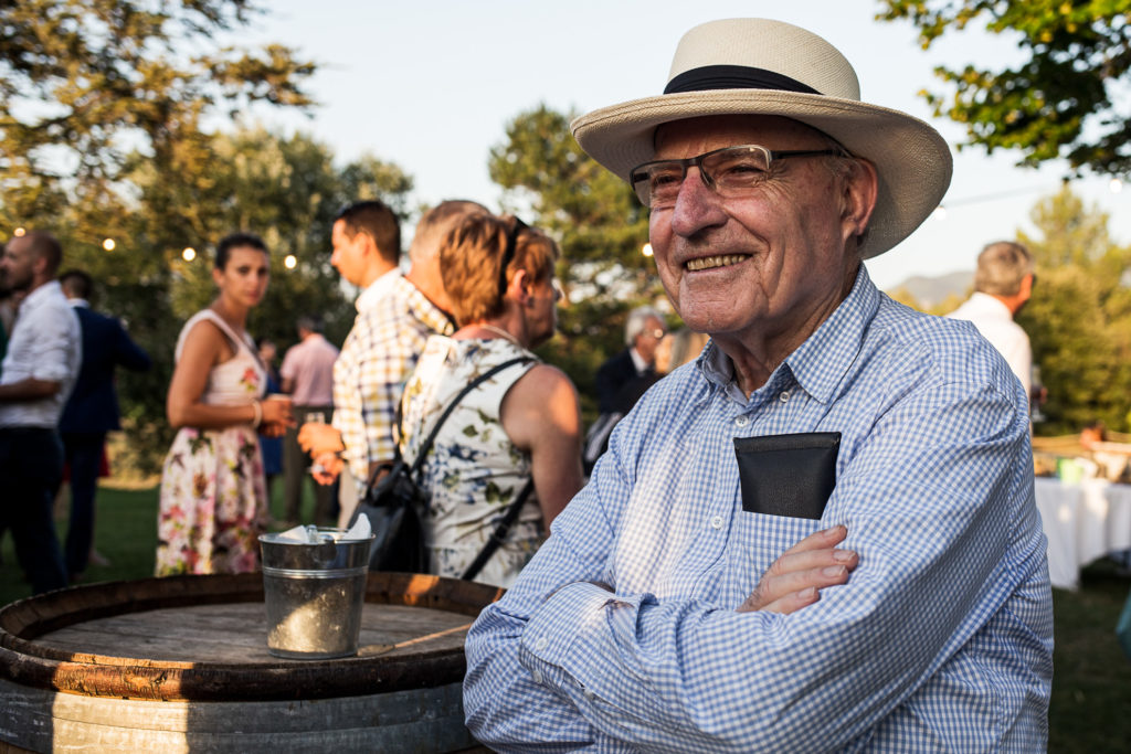 Une fois ressortis de l’église en tant que Madame et Monsieur, le joyeux cortège se rend pour la suite des festivités au Domaine de la Pommé, vers Trets. Le cadre est magnifique -et diffère un peu de la Haute-Marne. La Sainte-Victoire au Nord, les champs d’Olivier au Sud, le domaine lui-même est superbe, et il fait un temps magnifique, voire caniculaire.