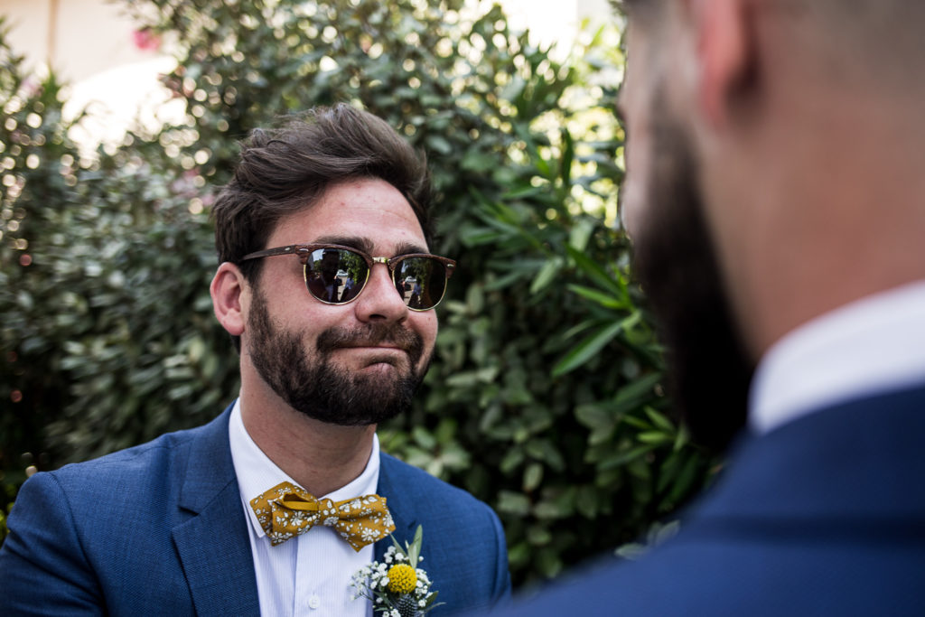 Ensuite, direction vers l’Église de Roquevaire, où les mariés rentrent sur la musique du Roi Lion ! L’église est magnifique, les amis et le frère du marié jouent les musiques, et le curé anime une cérémonie joviale et décontractée, en parfaite harmonie avec les mariés. Je ne pense pas revoir de sitôt un curé qui parle de gastronomie sénégalaise et des calanques marseillaises pendant son office !