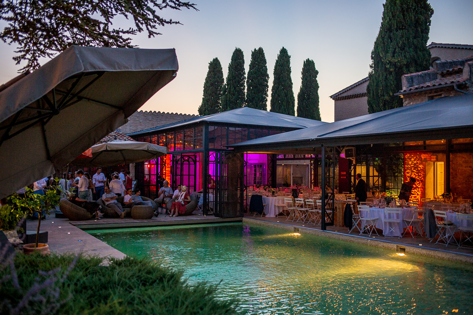 Une fois ressortis de l’église en tant que Madame et Monsieur, le joyeux cortège se rend pour la suite des festivités au Domaine de la Pommé, vers Trets. Le cadre est magnifique -et diffère un peu de la Haute-Marne. La Sainte-Victoire au Nord, les champs d’Olivier au Sud, le domaine lui-même est superbe, et il fait un temps magnifique, voire caniculaire.