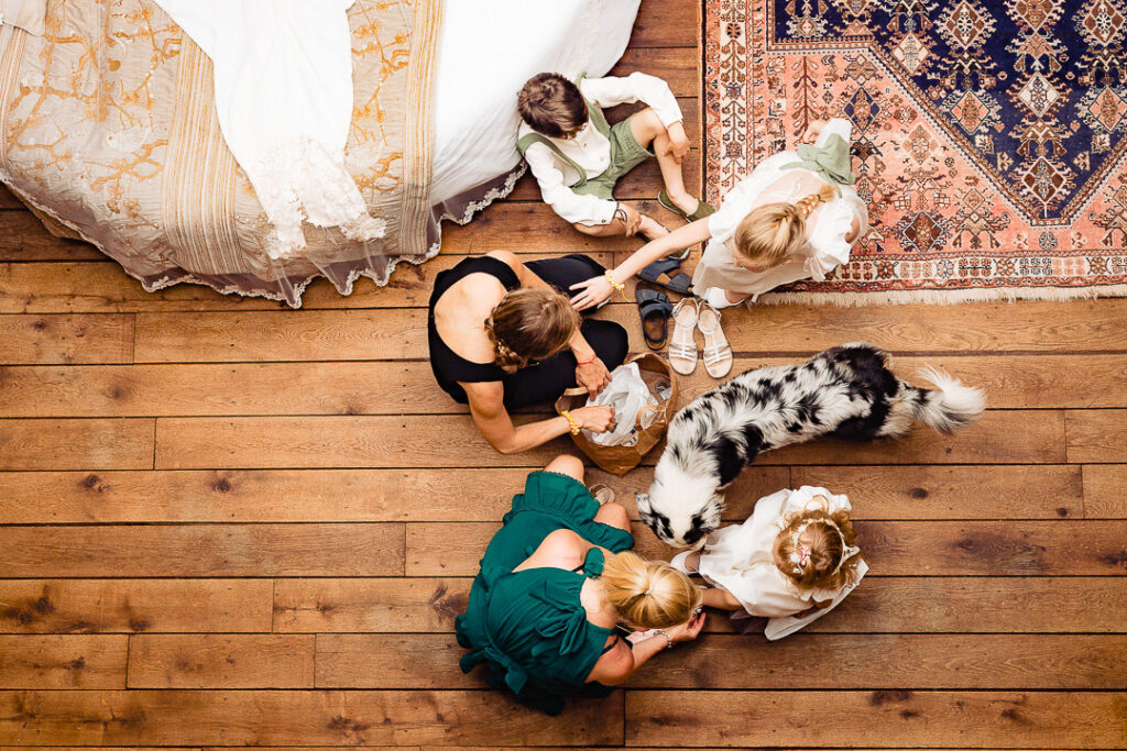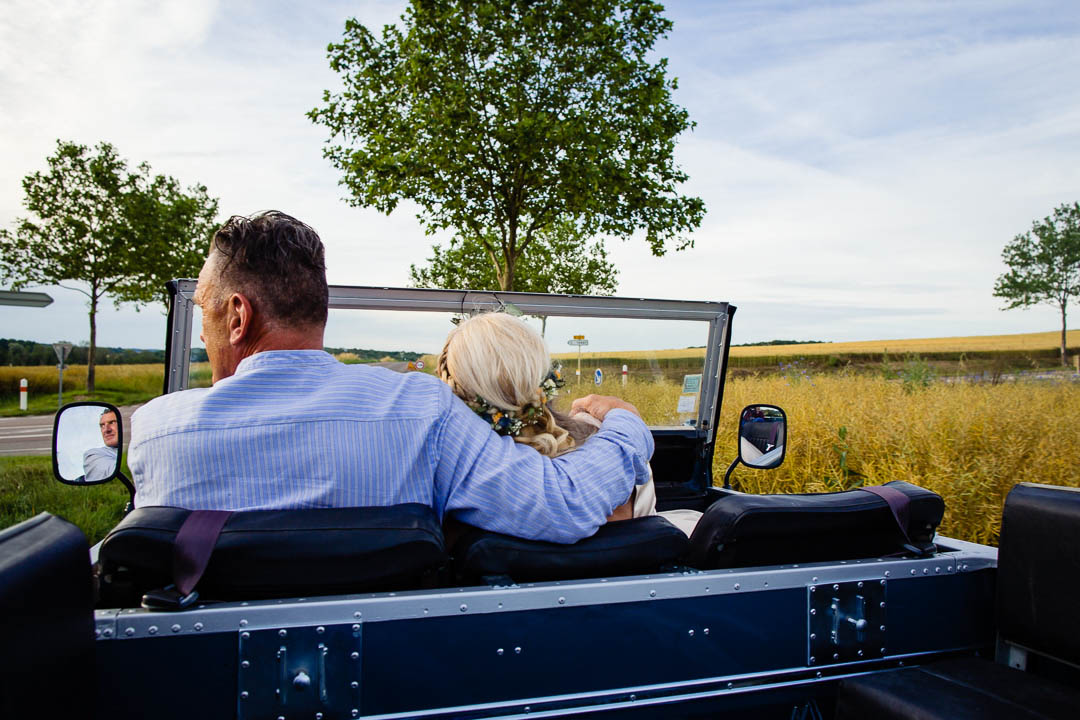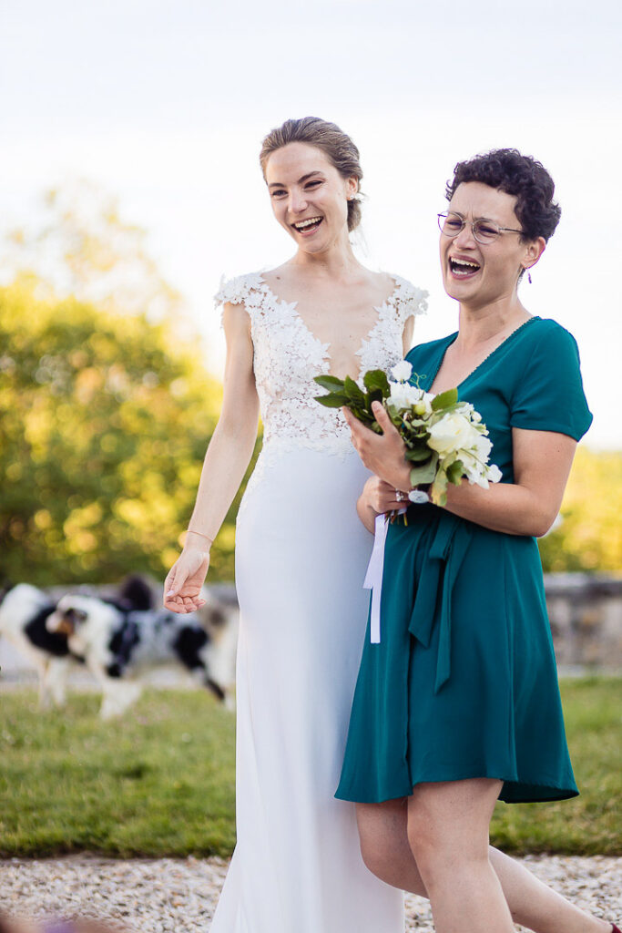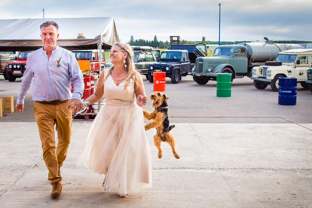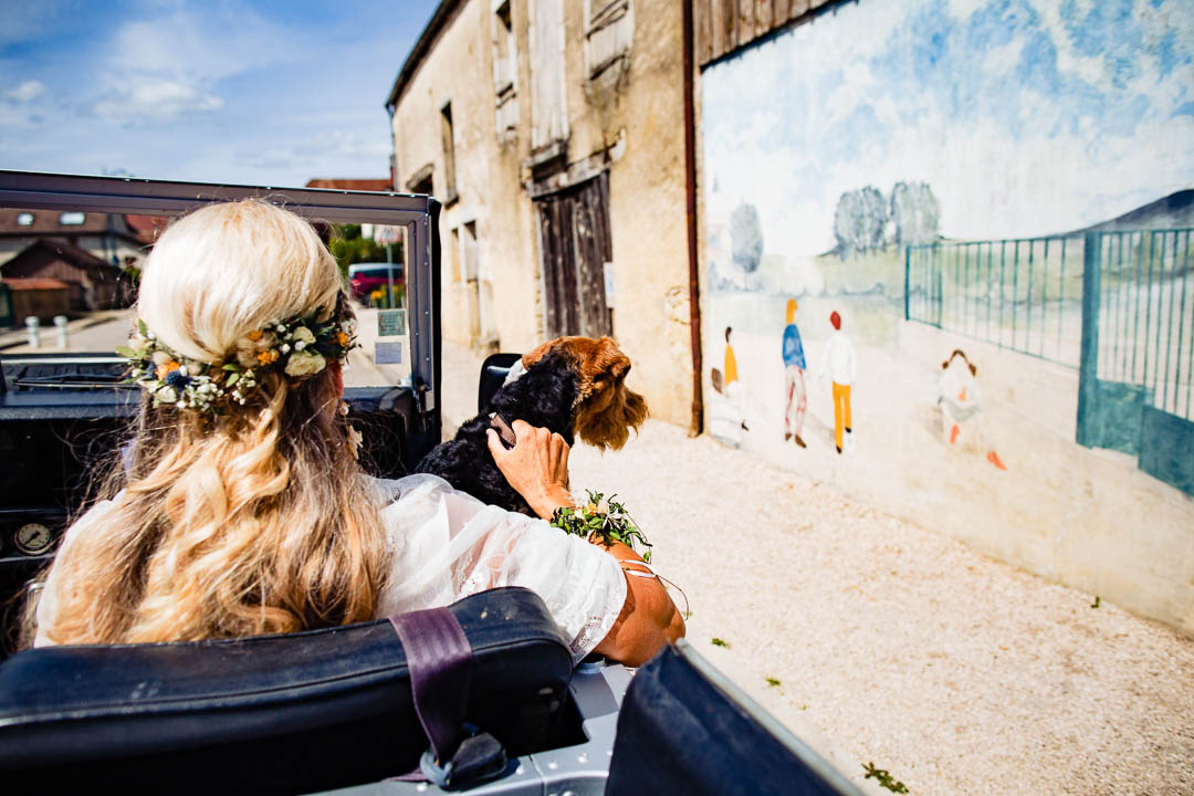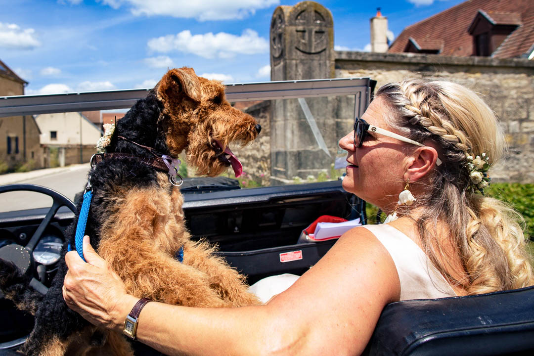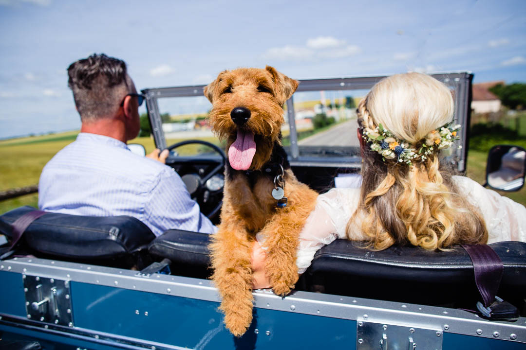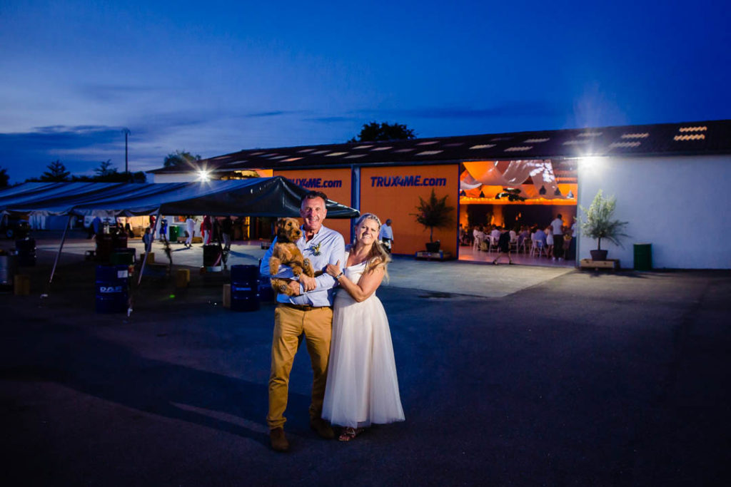 Les mariés se sont rencontrés en compétition de 4×4 extrême en Roumanie. Ils travaillent tous les deux dans l’univers du camion et du 4×4. Françoise a même participé à la dernière édition du Dakar (et a profité du mariage pour en faire l’annonce !). Ils ont tous les deux des enfants de leur côté (7 au total). Leur “enfant” ensemble, c’est Winch, leur chien adoré, qui a eu une grande place dans ce mariage, comme vous remarquerez sur les photos !