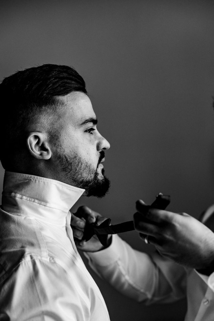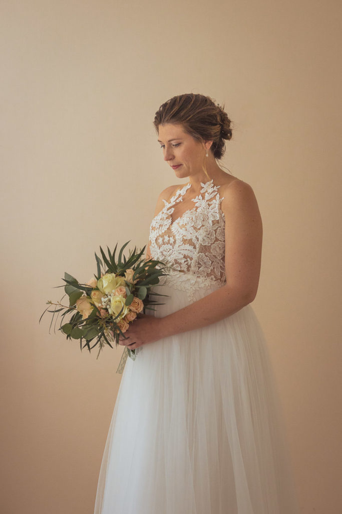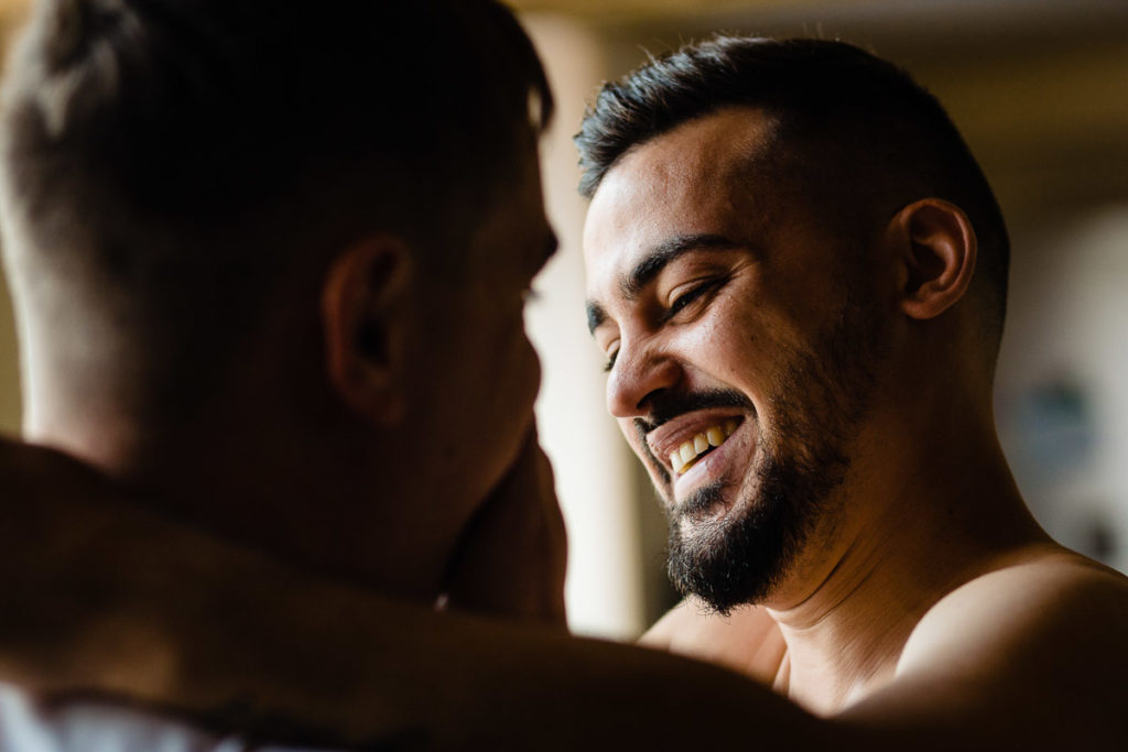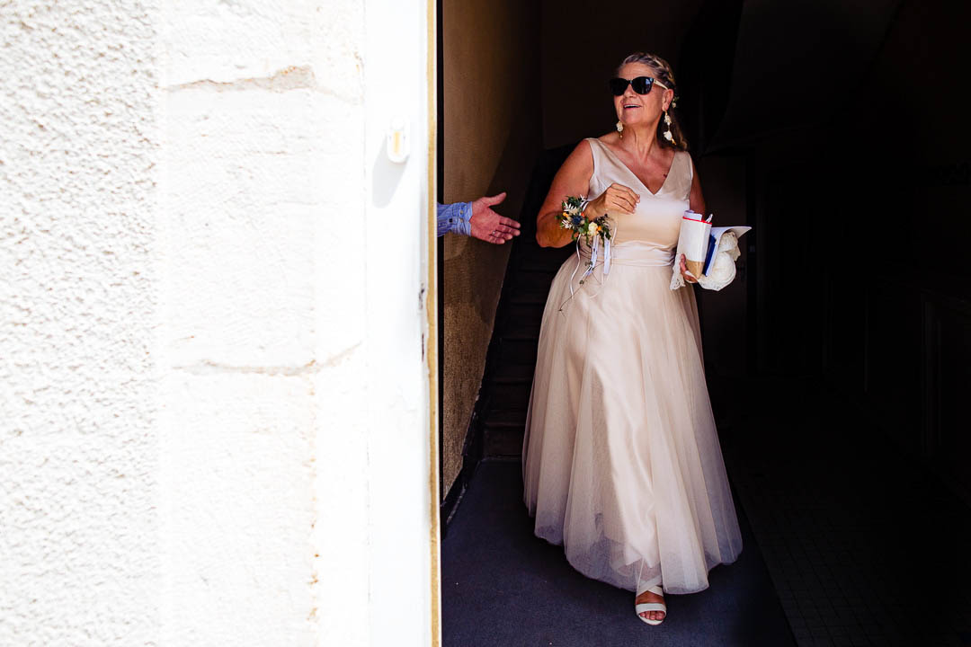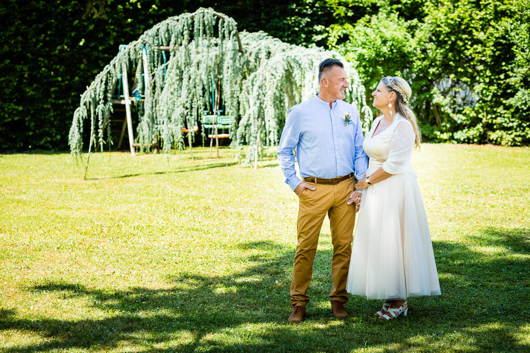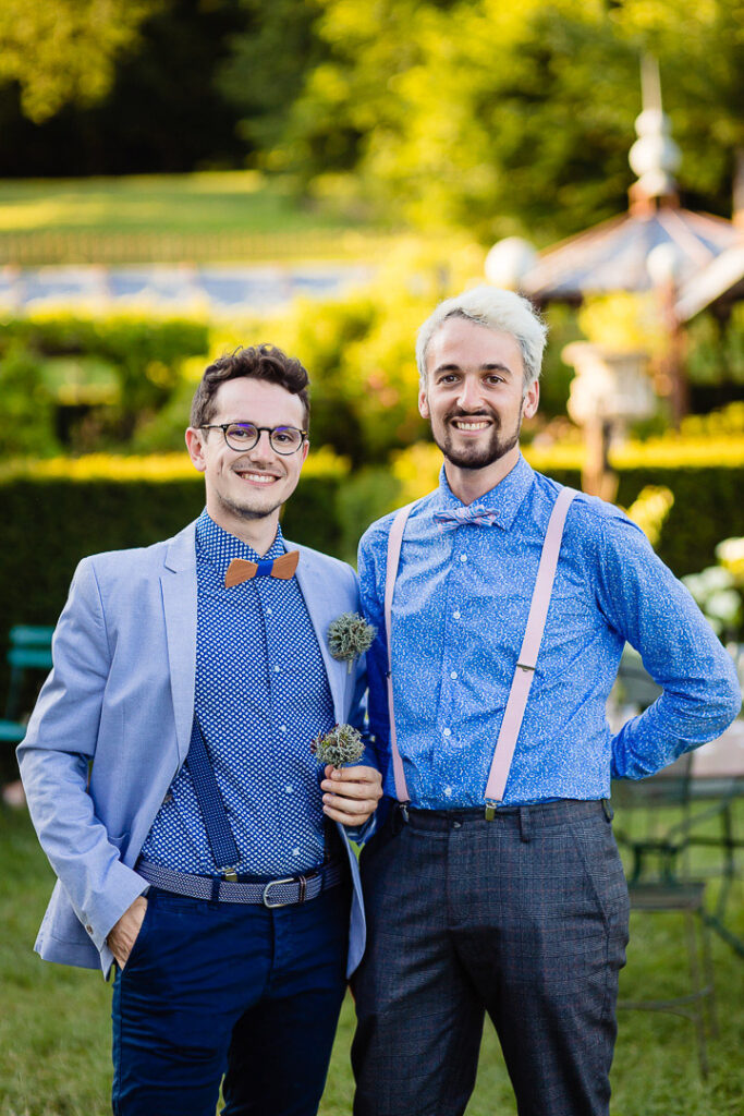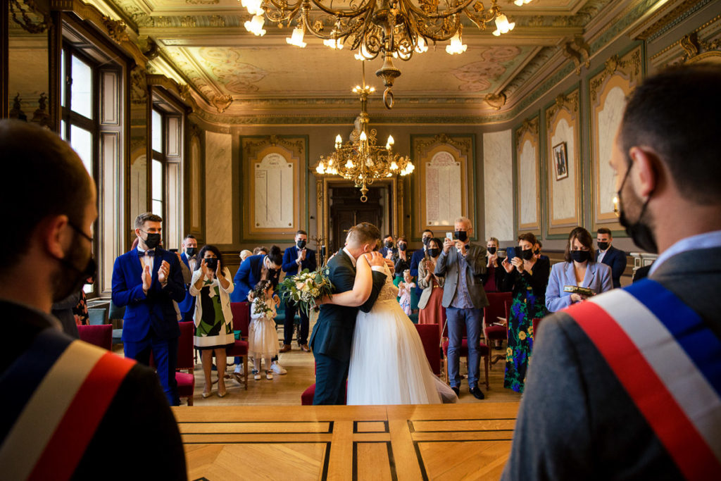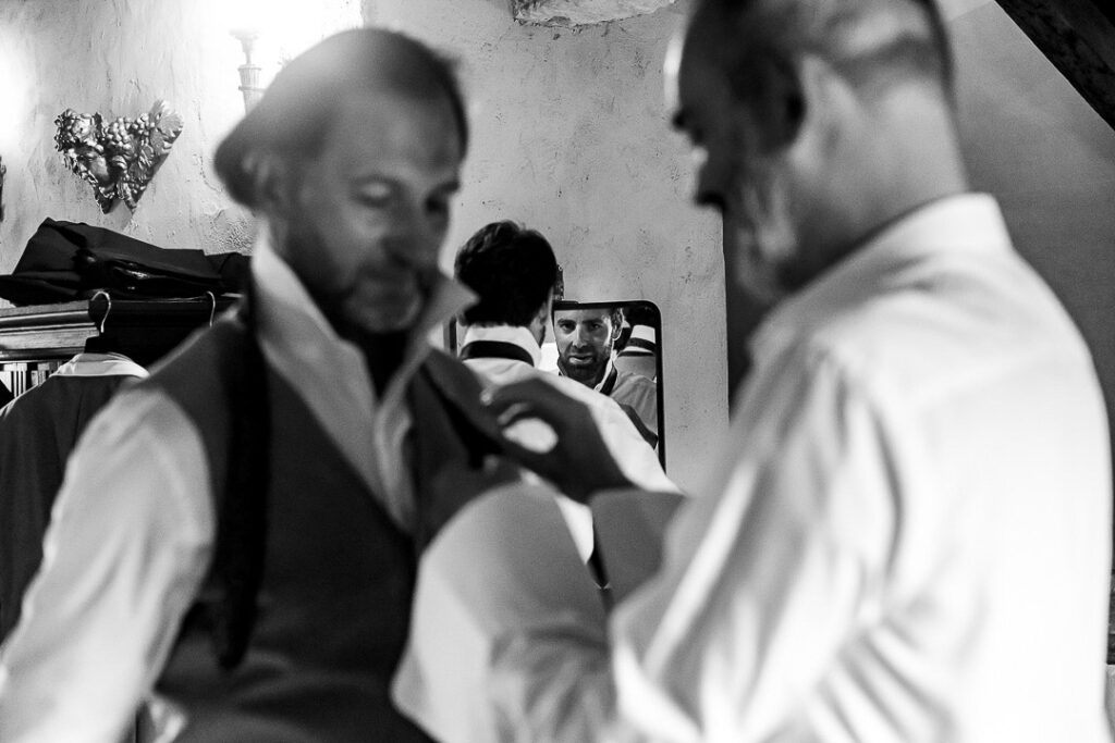 Les préparatifs ont tout d’abord commencé chez le coiffeur, puis chez Franck, à Clenay, un petit village à proximité de Dijon. C’est dans leur jardin qu’ils se sont découverts en tenue de mariés : forte émotion pour Franck, moment touchant que de voir ce grand gaillard aussi ému.