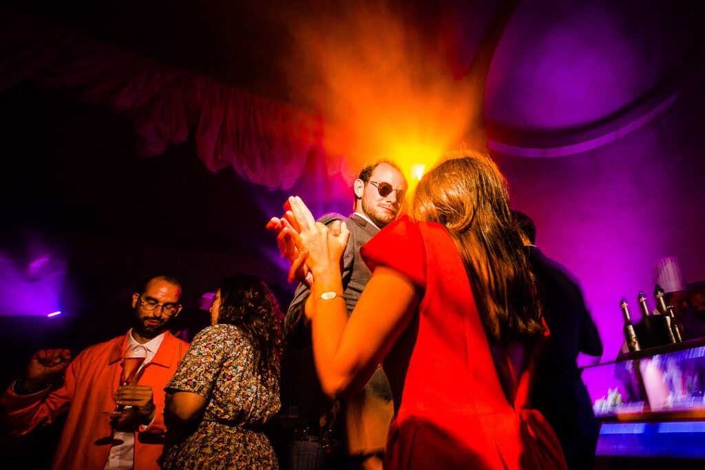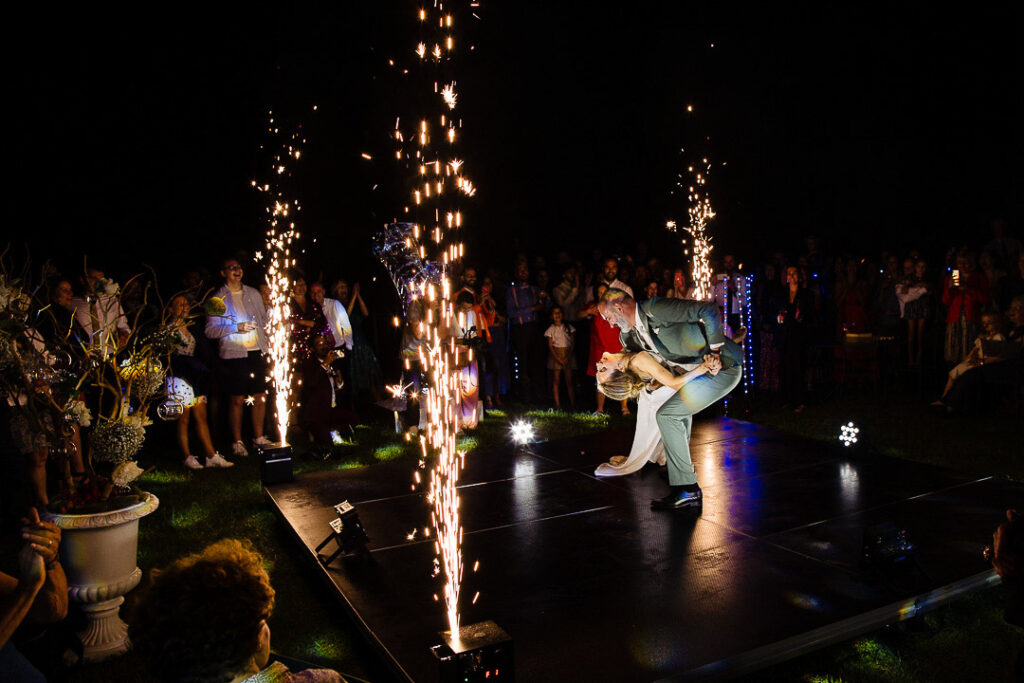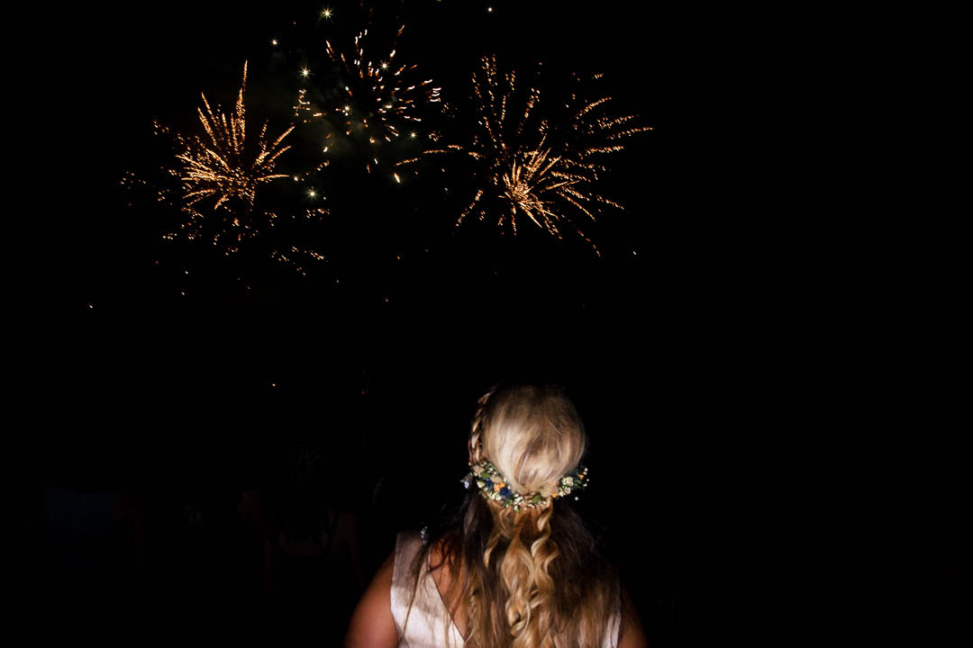 Ambiance de feu ensuite sur le dancefloor, après une première danse sur du reggaeton lento (Françoise habite sur la Costa Brava), et un très belle gestion musicale de Dij’anime, le couple a été agréablement surpris par un feu d’artifice bien caché. Le photographe aussi a failli être surpris, alors message aux invités : prévenez le photographe quand vous prévoyez une surprise !