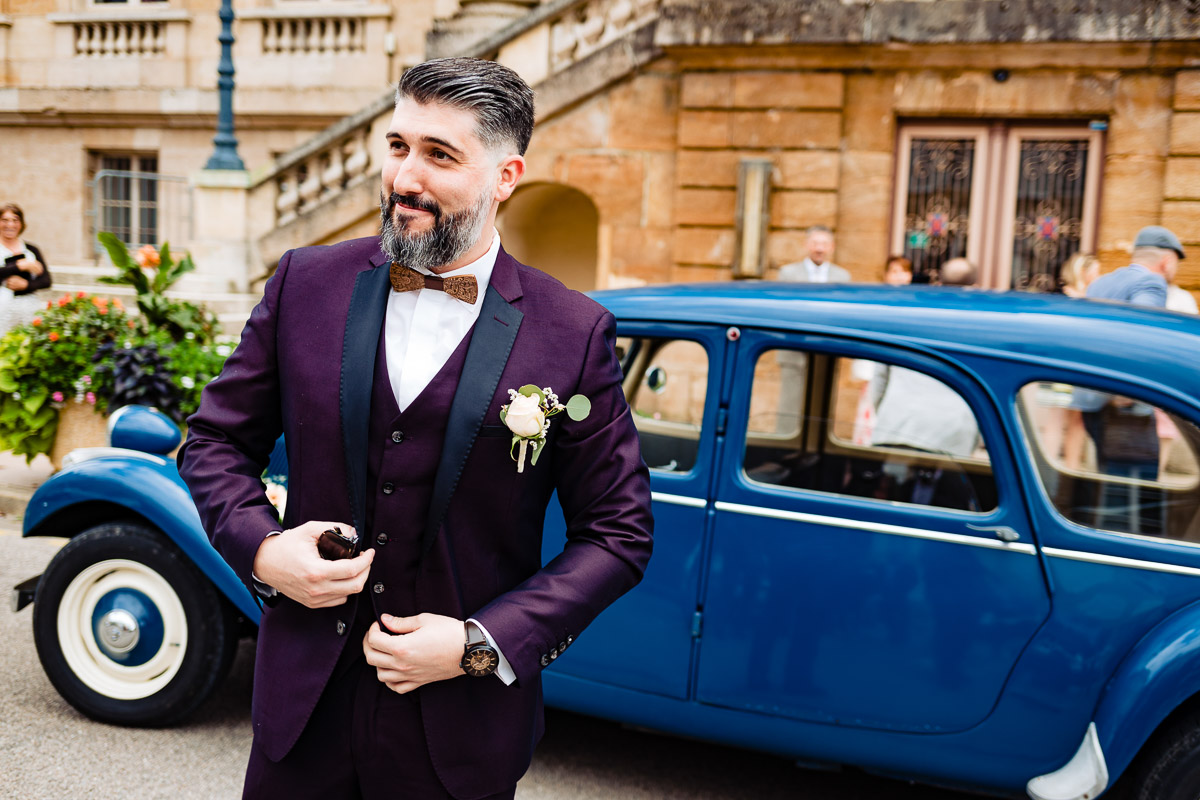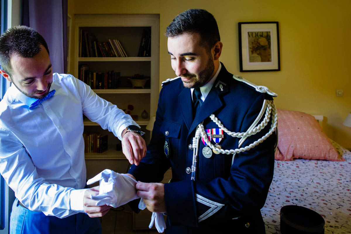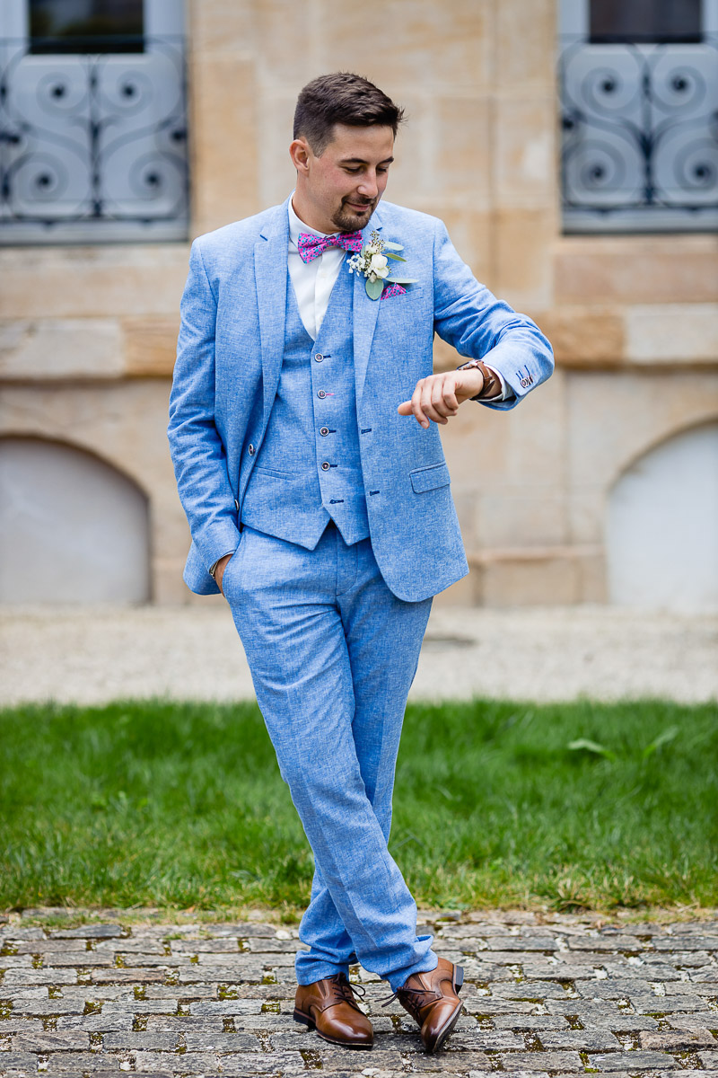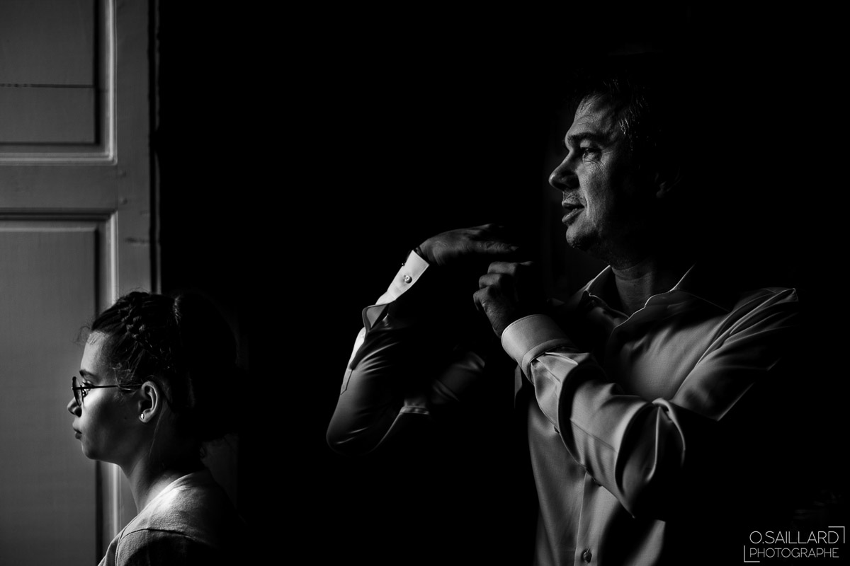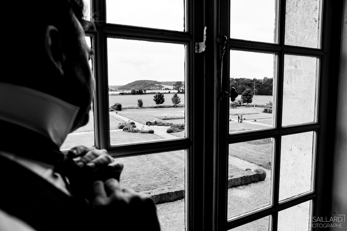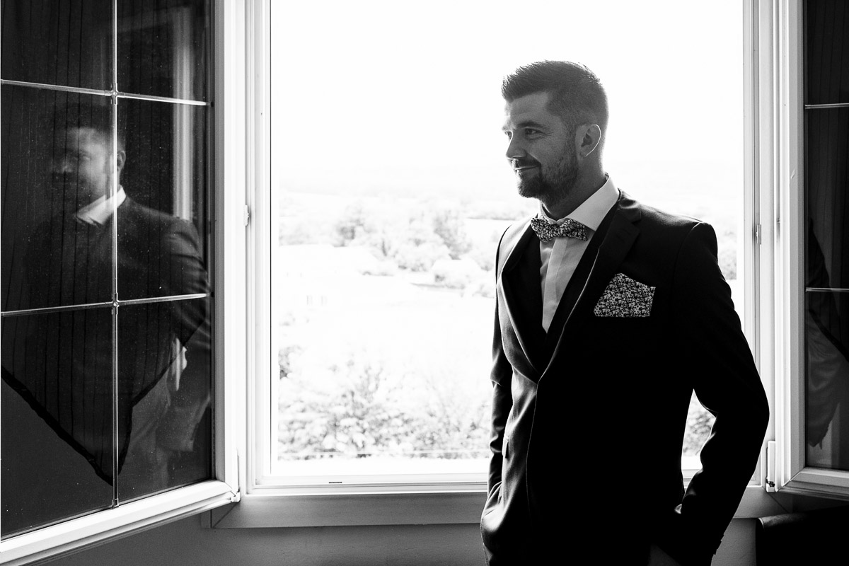 Les préparatifs d’Amélie ont eu lieu avec sœurs et amies dans la maison qu’elle partage avec Ghislain, pendant que le marié se préparait chez ses parents, à une rue de chez moi. Après s’être habillé avec ses témoins, nous avons eu quelques minutes pour des photos sur remparts de Langres, la maison les jouxtant.