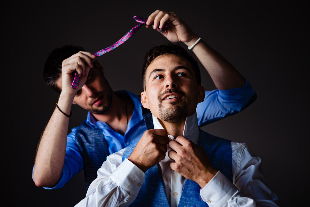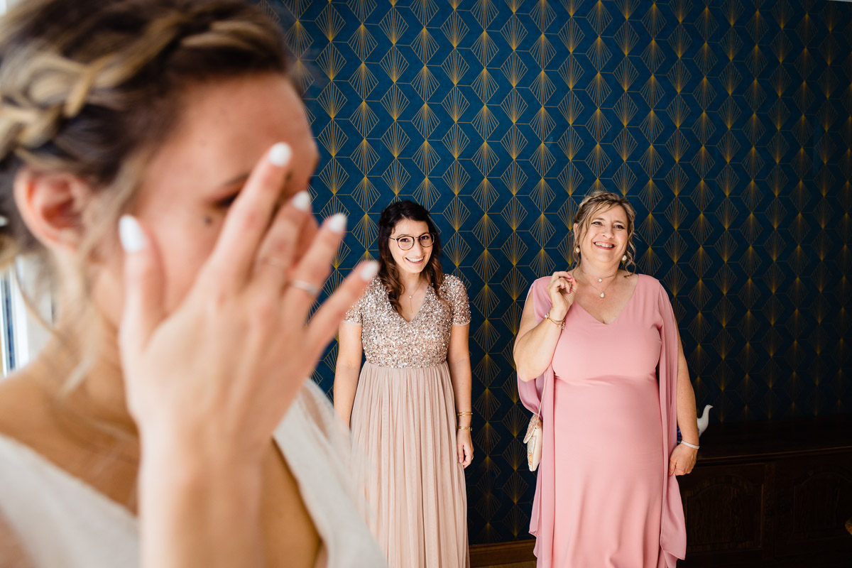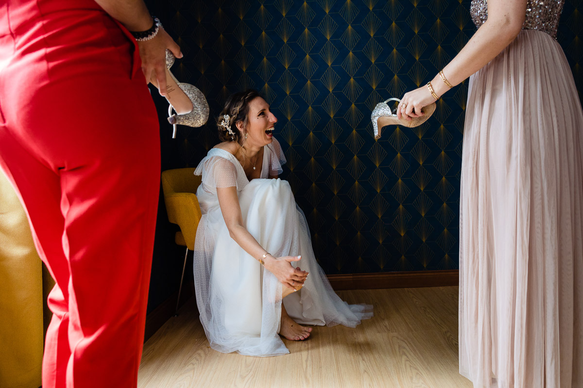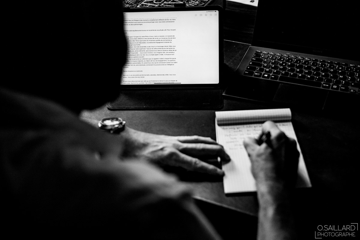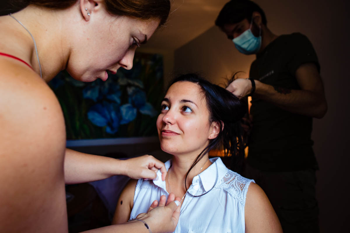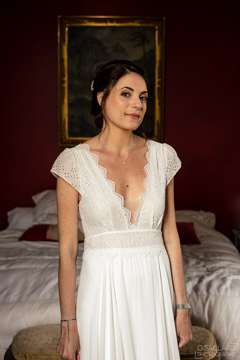 Les préparatifs d’Amélie ont eu lieu avec sœurs et amies dans la maison qu’elle partage avec Ghislain, pendant que le marié se préparait chez ses parents, à une rue de chez moi. Après s’être habillé avec ses témoins, nous avons eu quelques minutes pour des photos sur remparts de Langres, la maison les jouxtant.