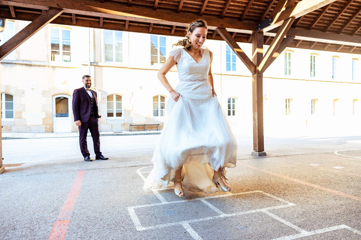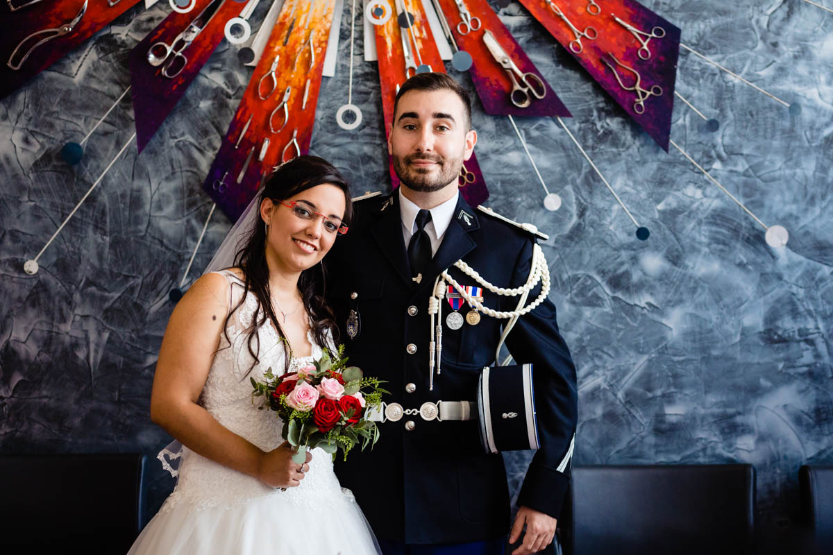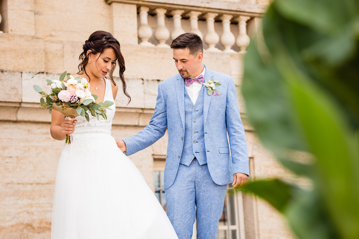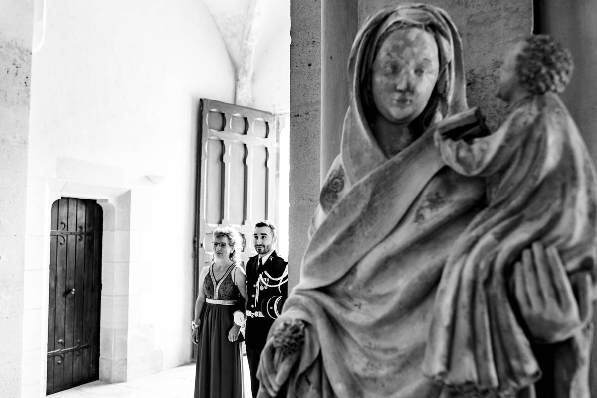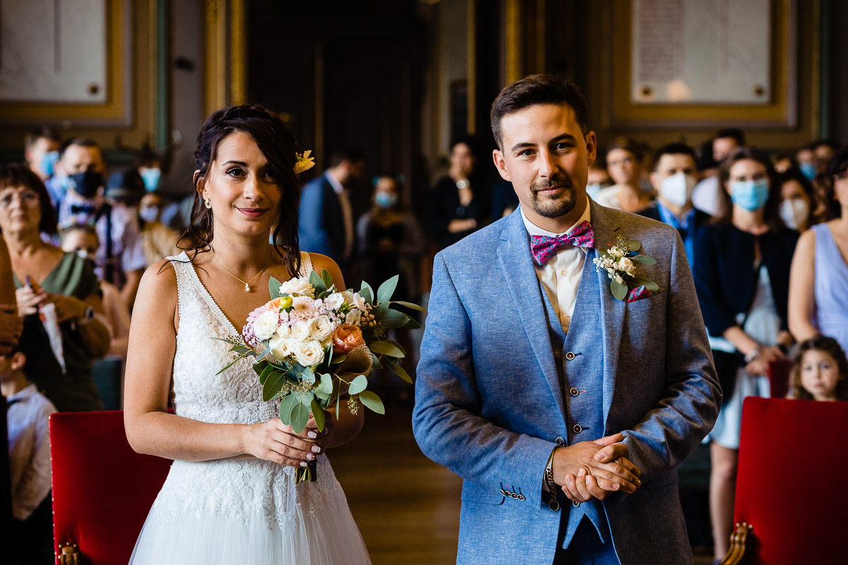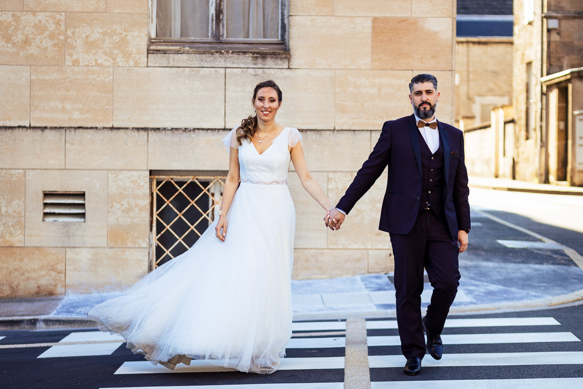 Ghislain a alors retrouvé Amélie chez eux pour un premier regard plein d’émotions avec vue sur la plaine lingonne. On est ensuite restés dans notre belle ville fortifiée pour la cérémonie civile à l’élégante mairie de Langres. Après l’union civile, l’adjoint au maire nous a donné l’accès au jardin du musée des Lumières pour des photos de couples de mariés canons dans un lieu canon.