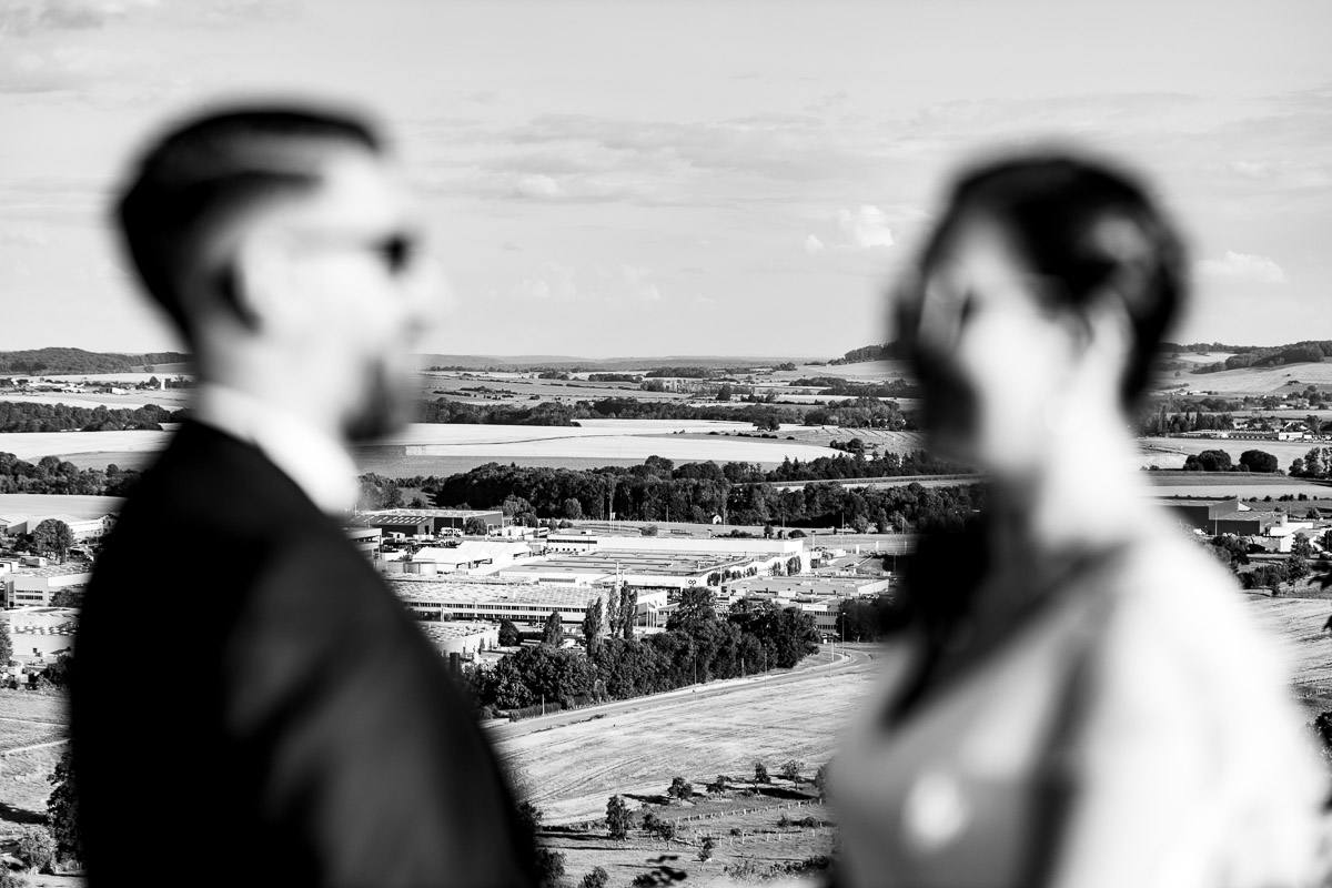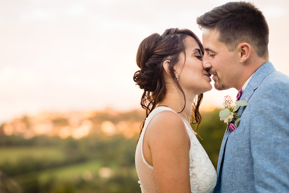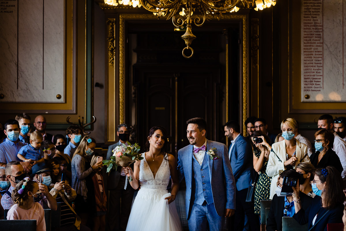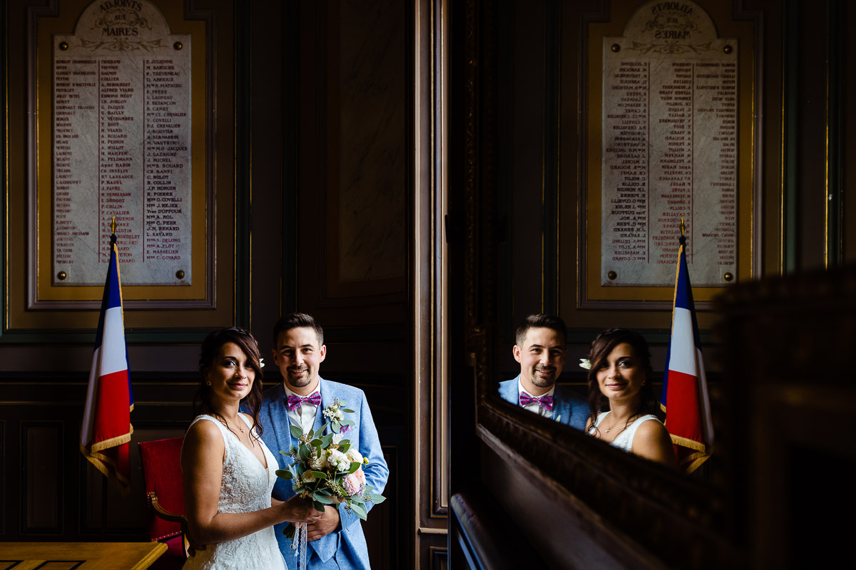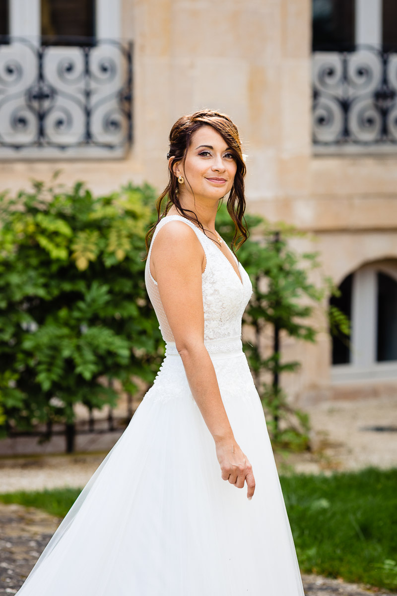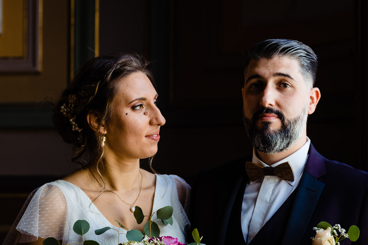 Ghislain a alors retrouvé Amélie chez eux pour un premier regard plein d’émotions avec vue sur la plaine lingonne. On est ensuite restés dans notre belle ville fortifiée pour la cérémonie civile à l’élégante mairie de Langres. Après l’union civile, l’adjoint au maire nous a donné l’accès au jardin du musée des Lumières pour des photos de couples de mariés canons dans un lieu canon.