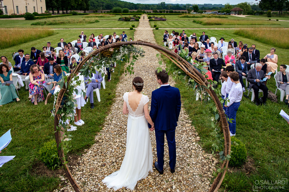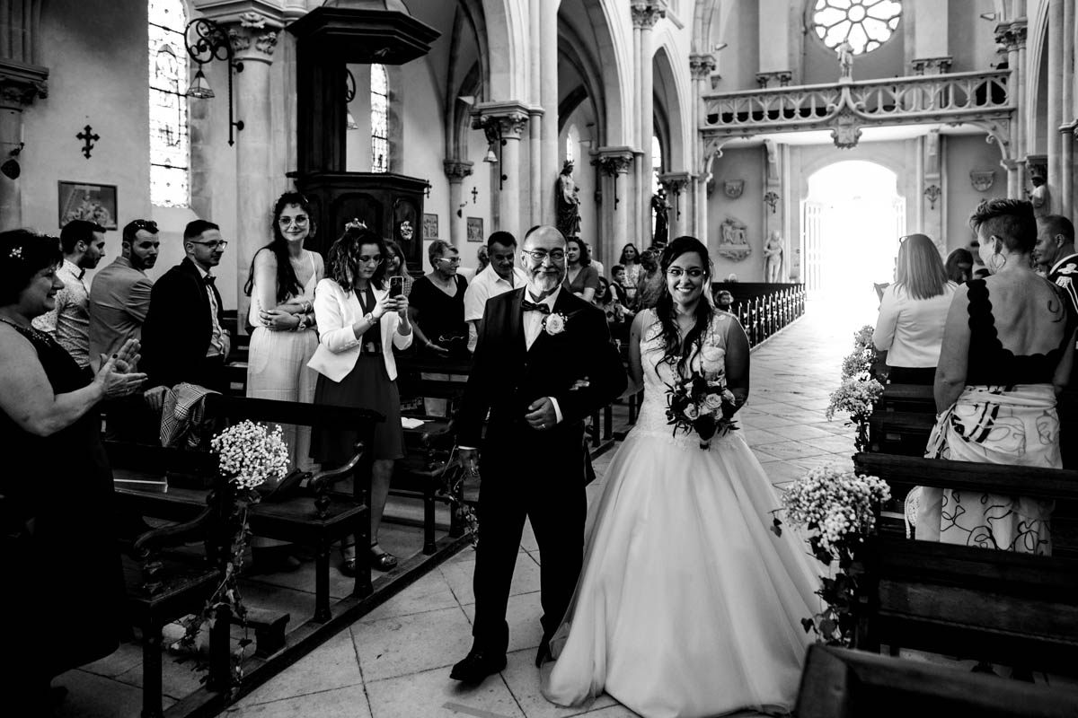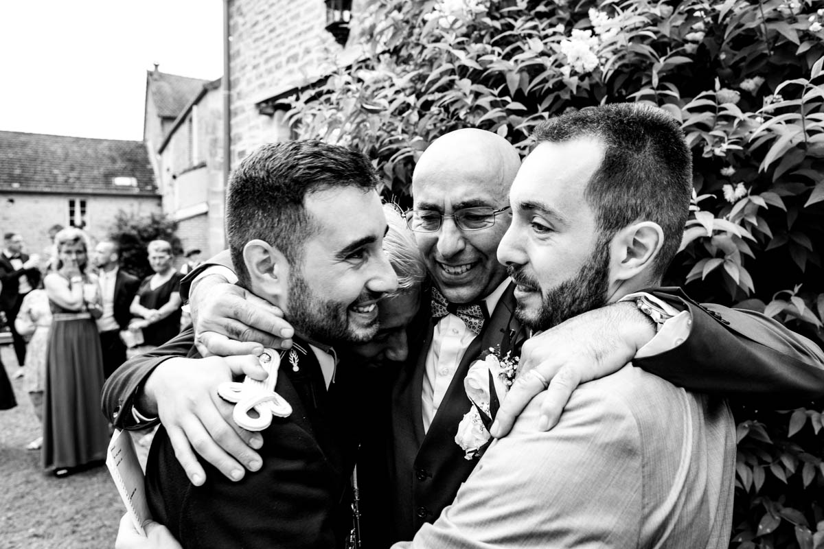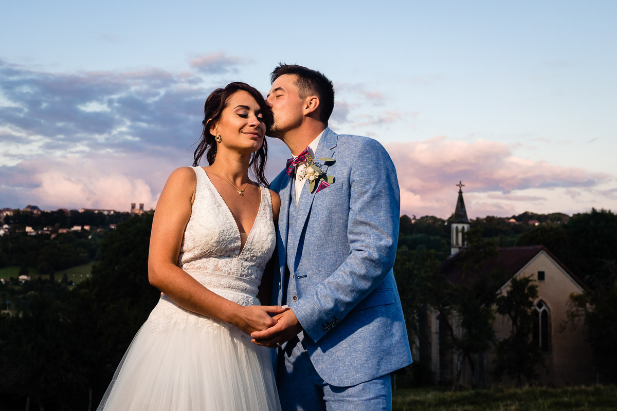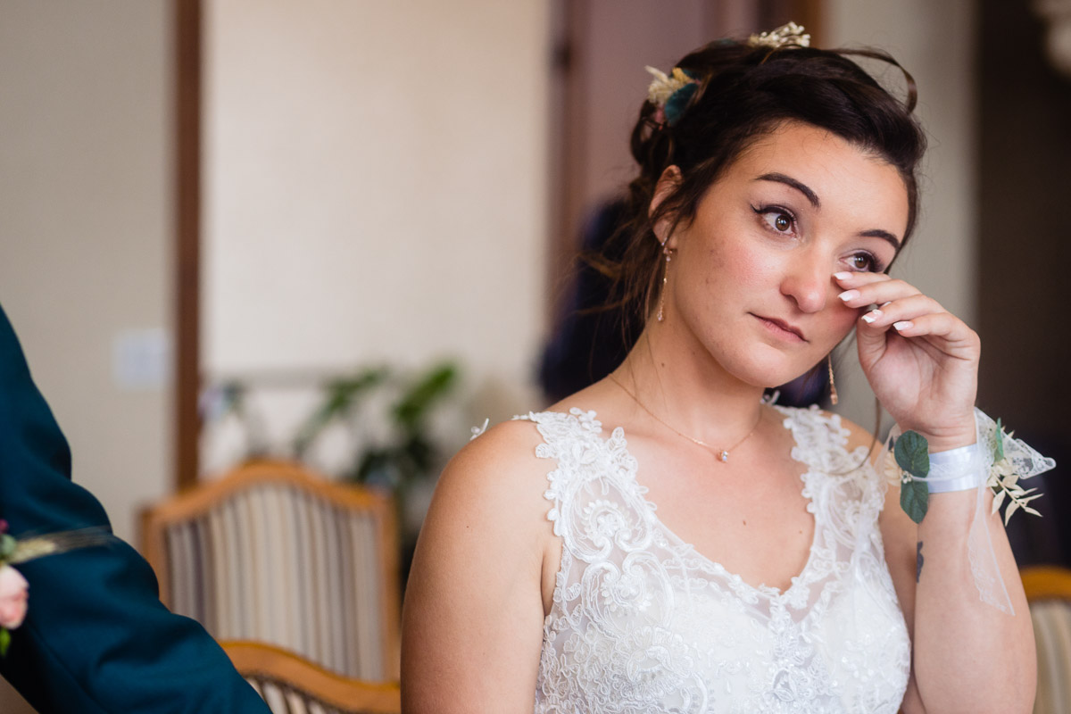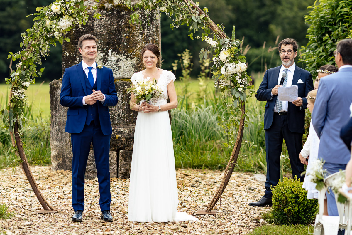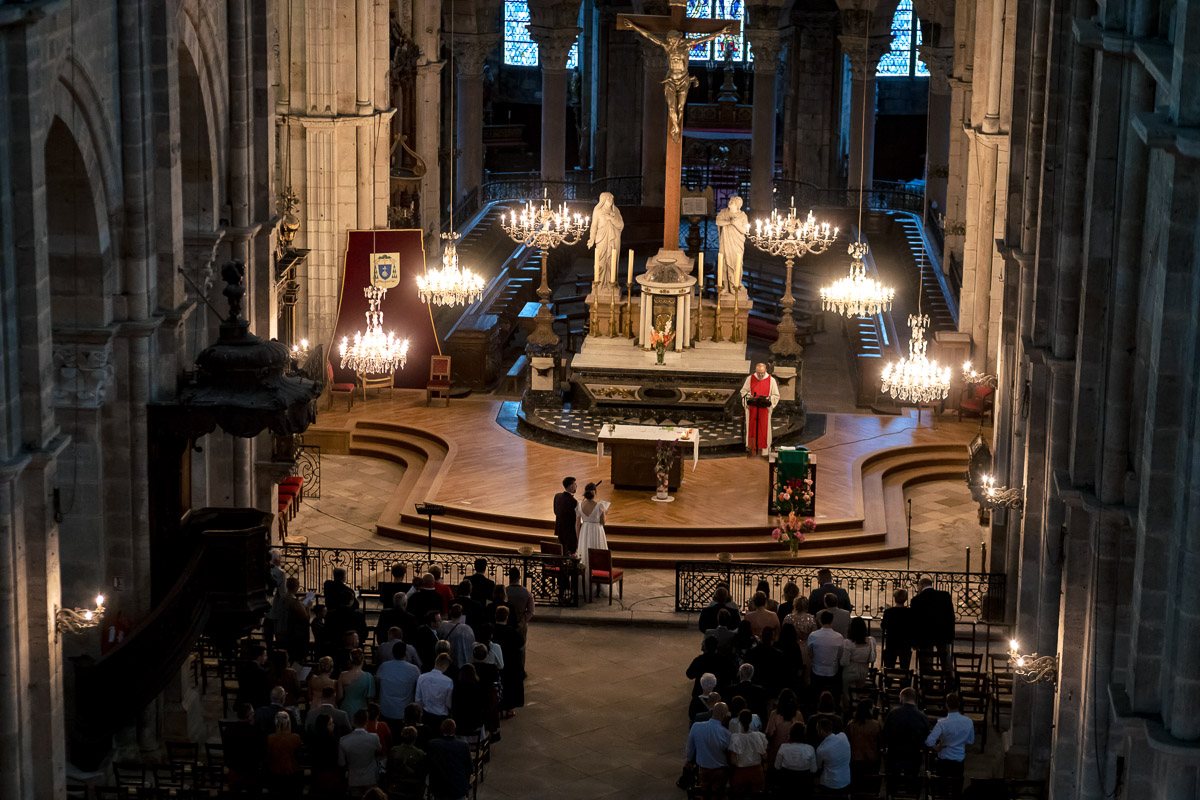 Ghislain a alors retrouvé Amélie chez eux pour un premier regard plein d’émotions avec vue sur la plaine lingonne. On est ensuite restés dans notre belle ville fortifiée pour la cérémonie civile à l’élégante mairie de Langres. Après l’union civile, l’adjoint au maire nous a donné l’accès au jardin du musée des Lumières pour des photos de couples de mariés canons dans un lieu canon.