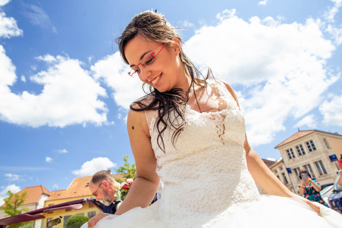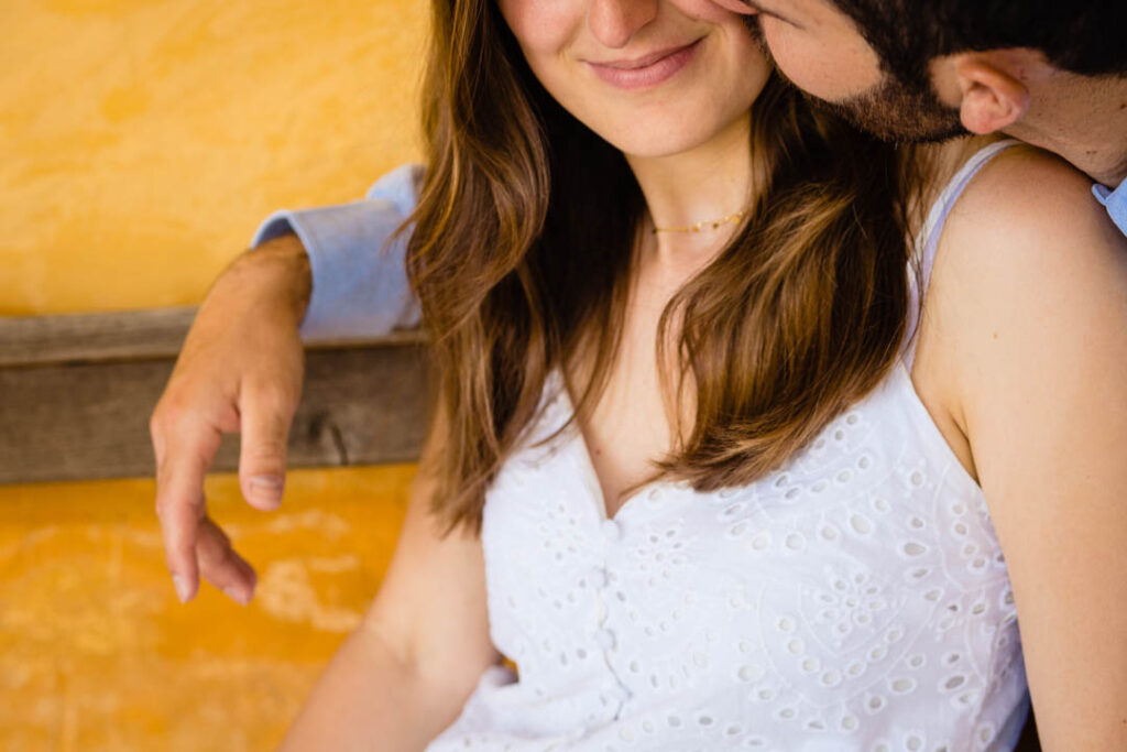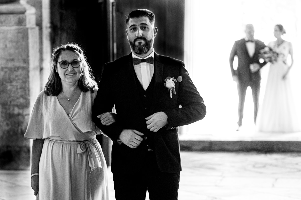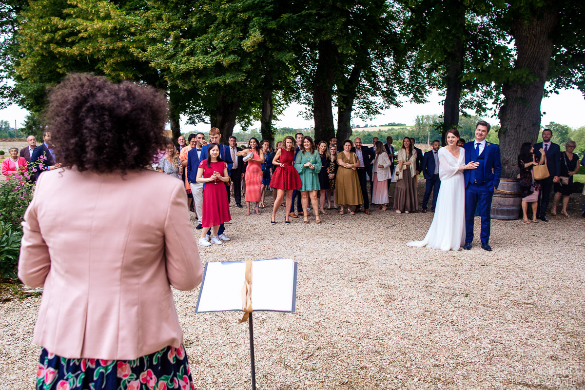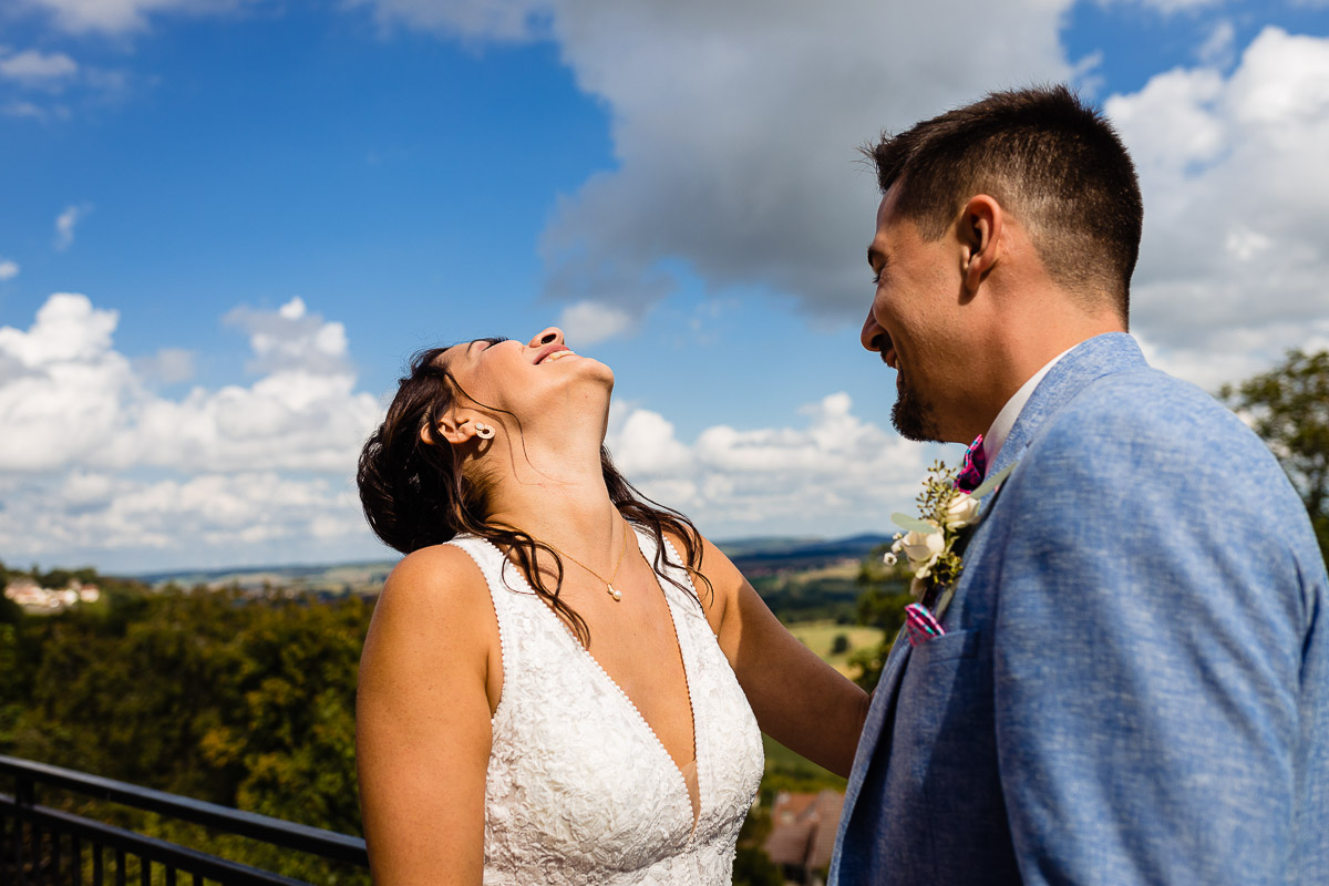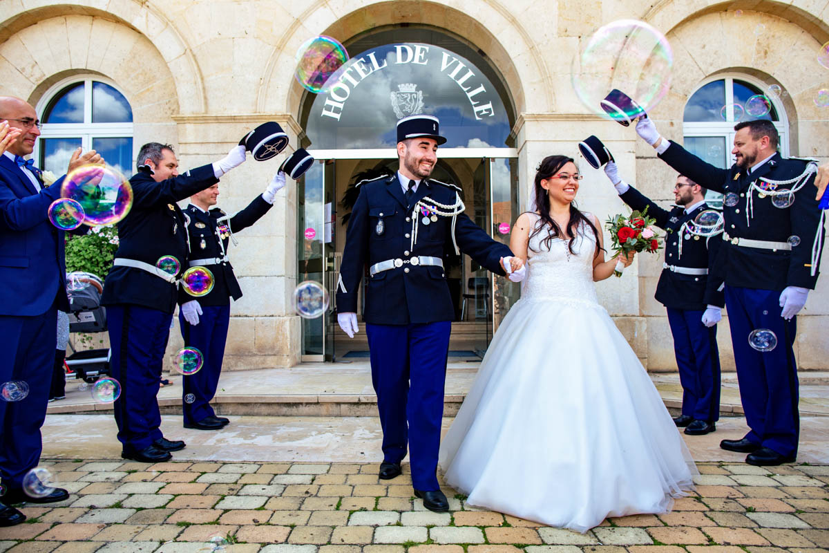 Ghislain a alors retrouvé Amélie chez eux pour un premier regard plein d’émotions avec vue sur la plaine lingonne. On est ensuite restés dans notre belle ville fortifiée pour la cérémonie civile à l’élégante mairie de Langres. Après l’union civile, l’adjoint au maire nous a donné l’accès au jardin du musée des Lumières pour des photos de couples de mariés canons dans un lieu canon.