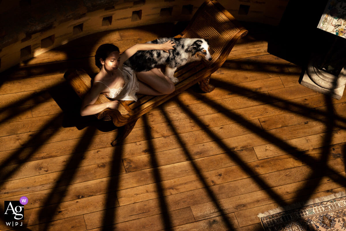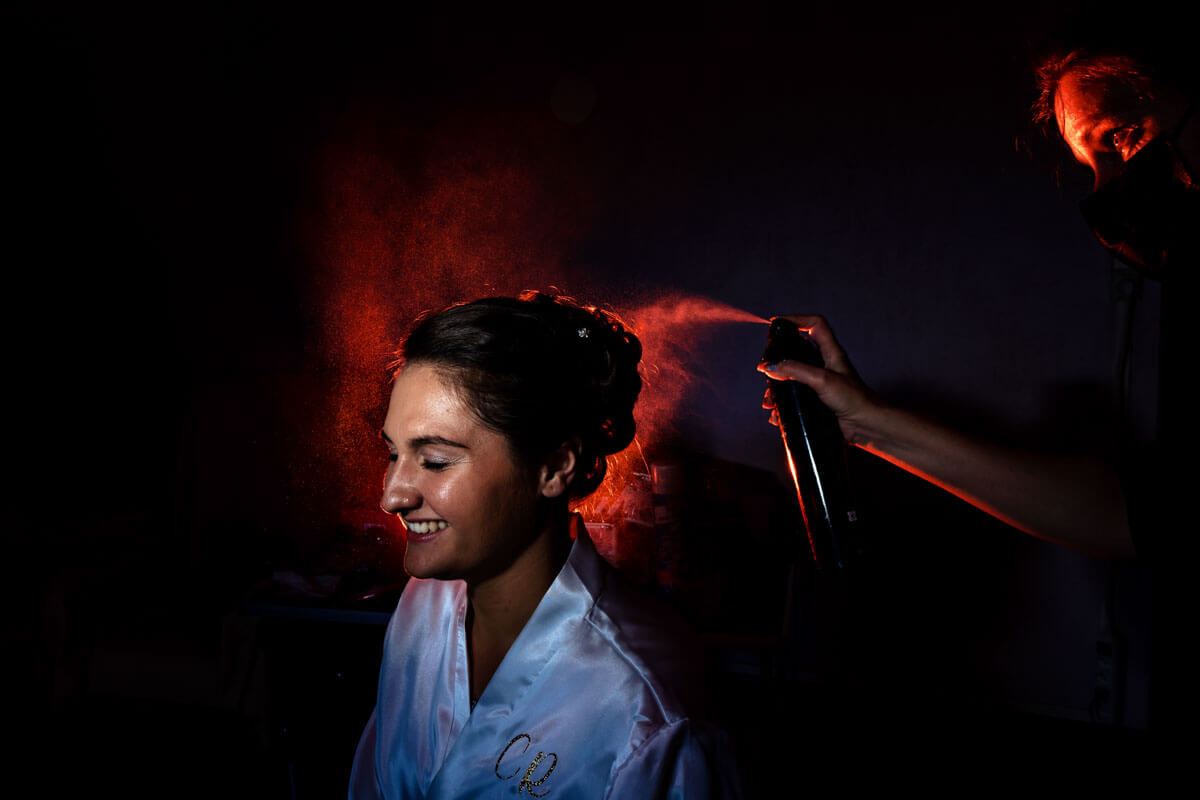 Le troisième avantage (oui, je sais, j’ai utilisé second au-dessus, je n’aurais pas dû), c’est pour le photographe : il se passera des choses bien plus intéressantes dans le confort de votre domicile (ou de la chambre du domaine) que dans un salon de coiffure public. Et puis cet endroit fait aussi plus fortement partie de votre histoire, c’est donc un avantage de l’avoir comme cadre photo !